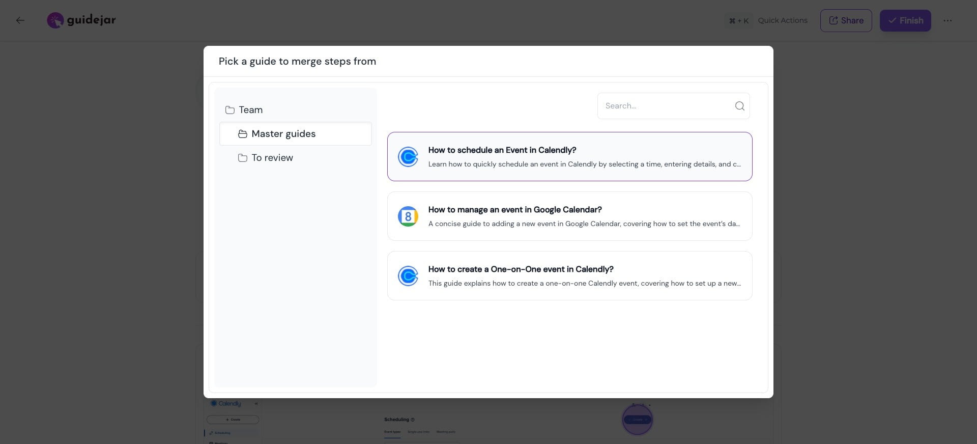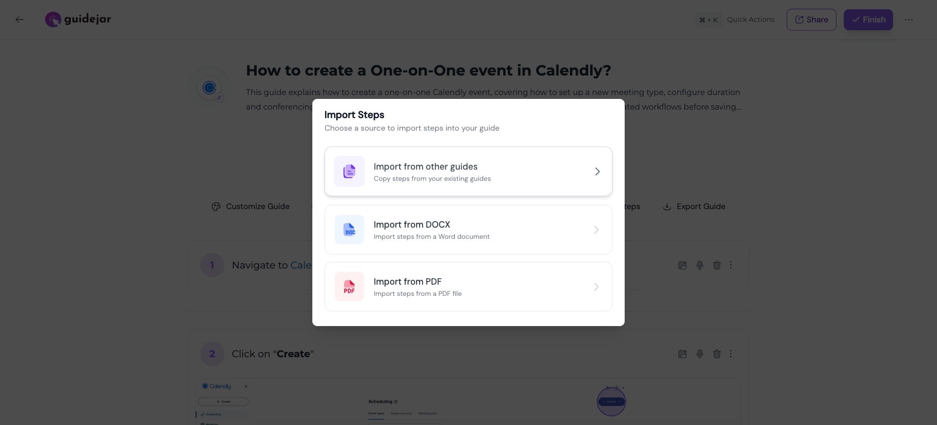 Select a guide Choose the guide you want to import the steps from