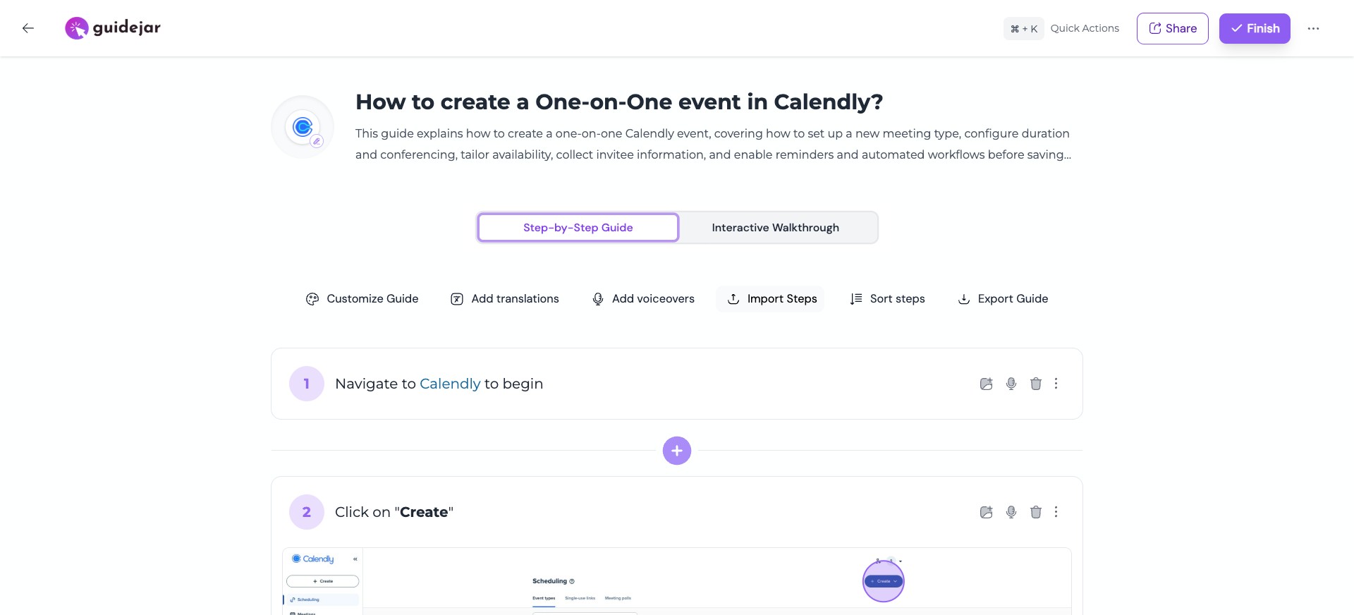 Learn how to reuse content by importing steps from an existing guide into your current one—helping you save time and maintain consistency across guides.
