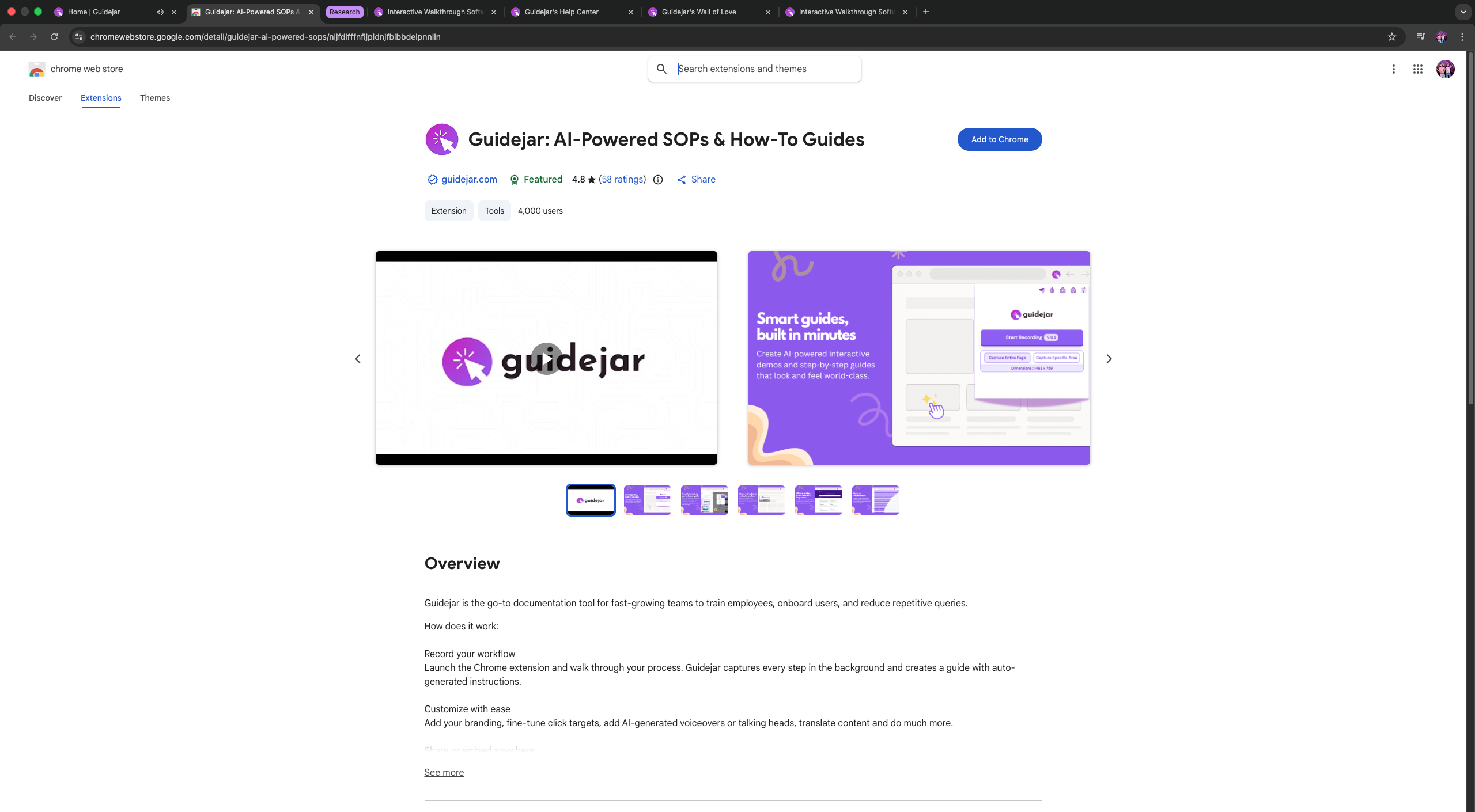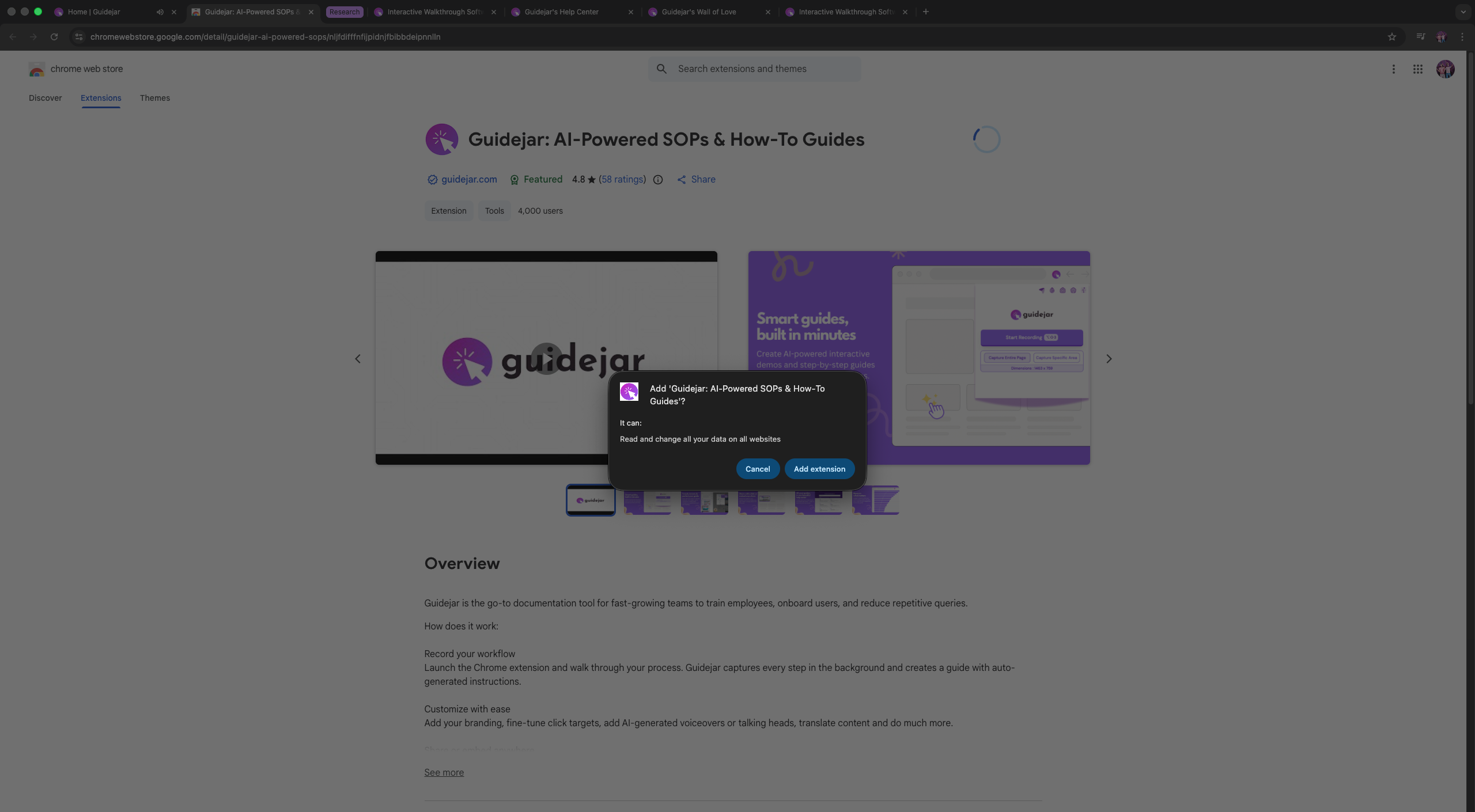 Visit the Chrome Web Store to install the Guidejar extension, then click "Add to Chrome"