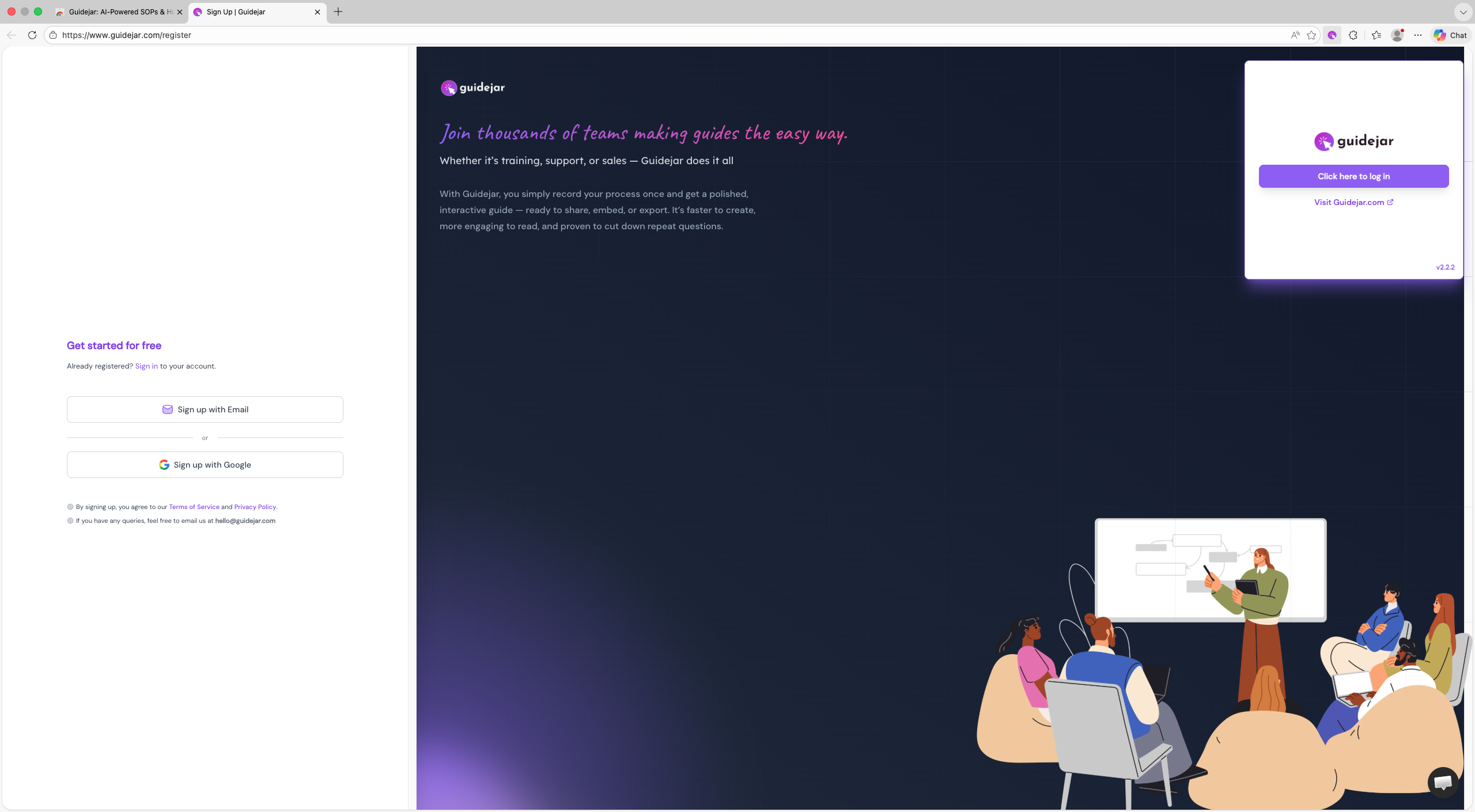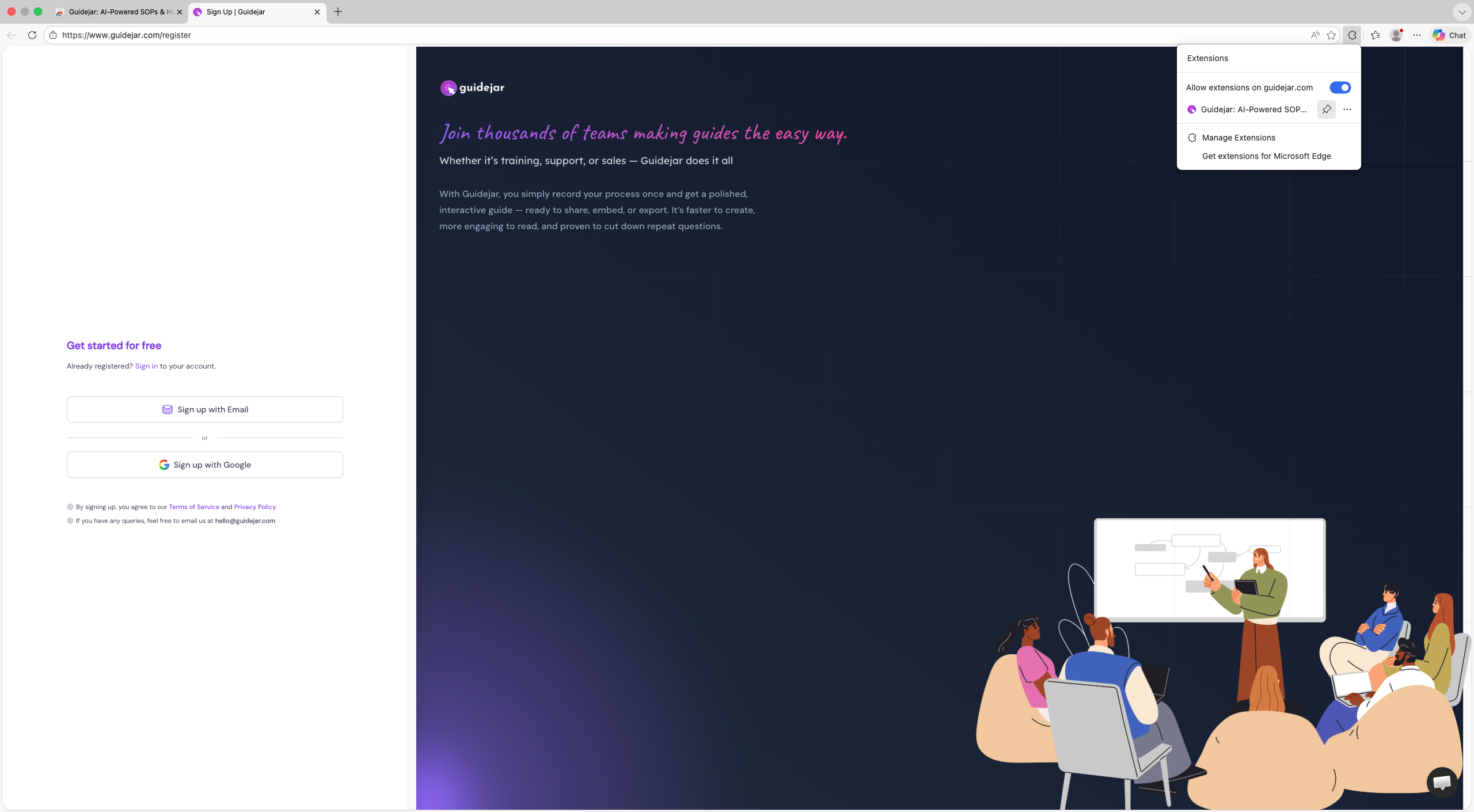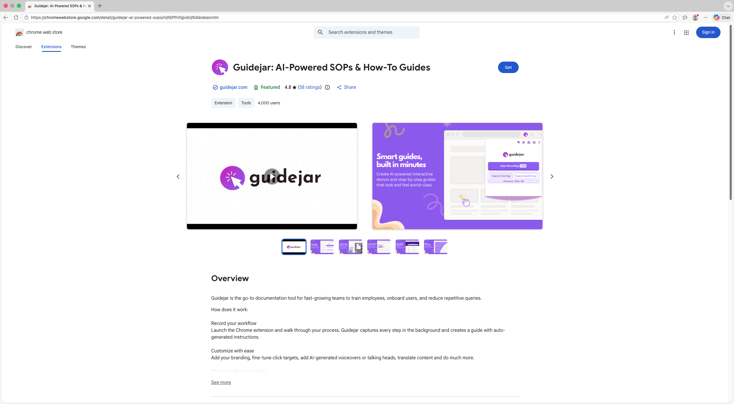 Visit the Chrome Web Store to install the Guidejar extension, then click "Get"