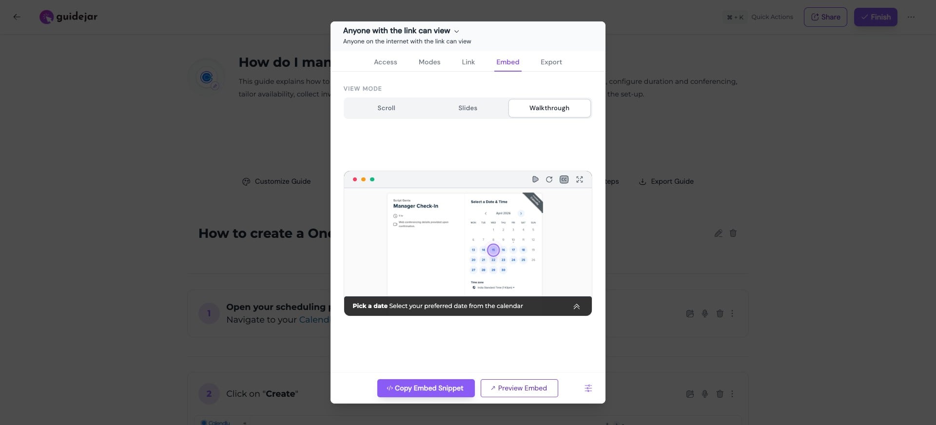 In interactive walkthroughs, mobile optimization is enabled by default — text bubbles are hidden and shown as a subtitle bar at the bottom for better readability on smaller screens or when the embed area is too narrow.