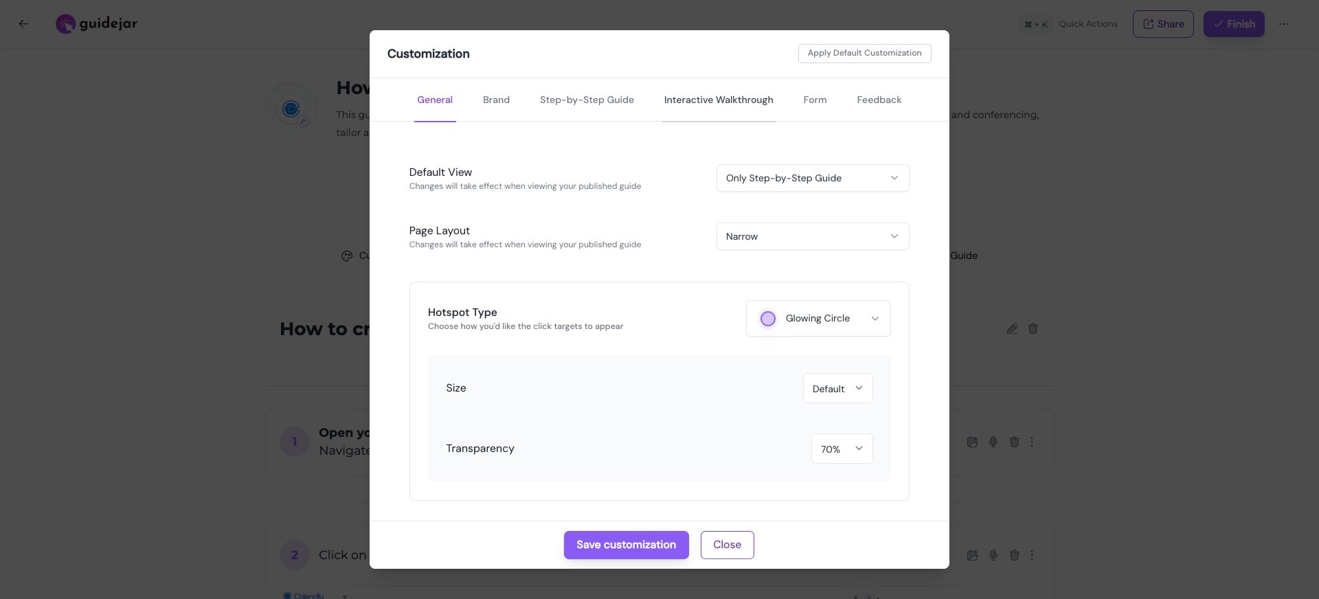 You can turn this off if you prefer to keep the text bubble everywhere. Open the guide editor and click on "Customize Guide".
