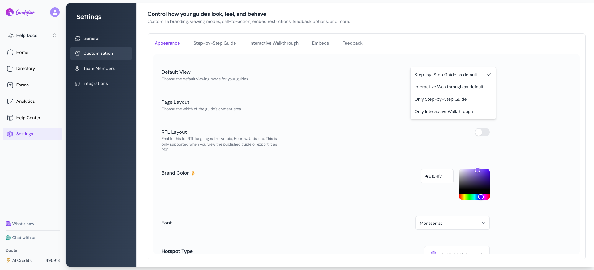 Learn how to set the default viewing mode for your guides, so users land on the experience you prefer—step-by-step or interactive walkthrough or both.