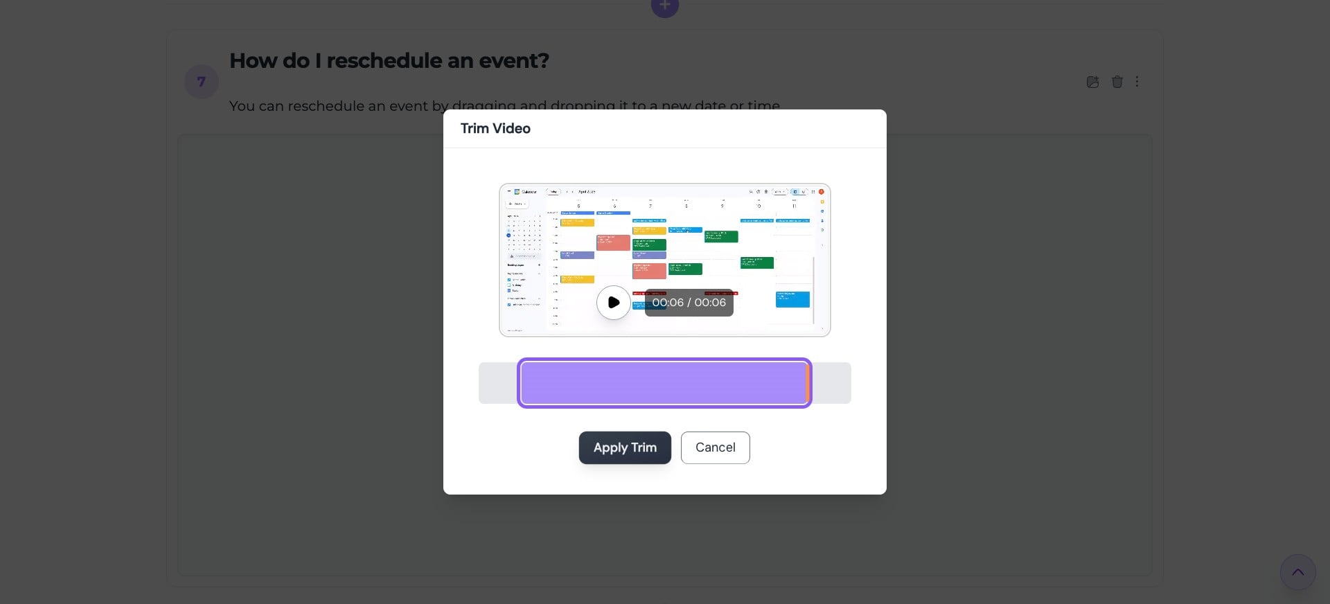 Drag the trim handles to set where the video should begin and end. You can play the video to make sure the trimmed section looks right.