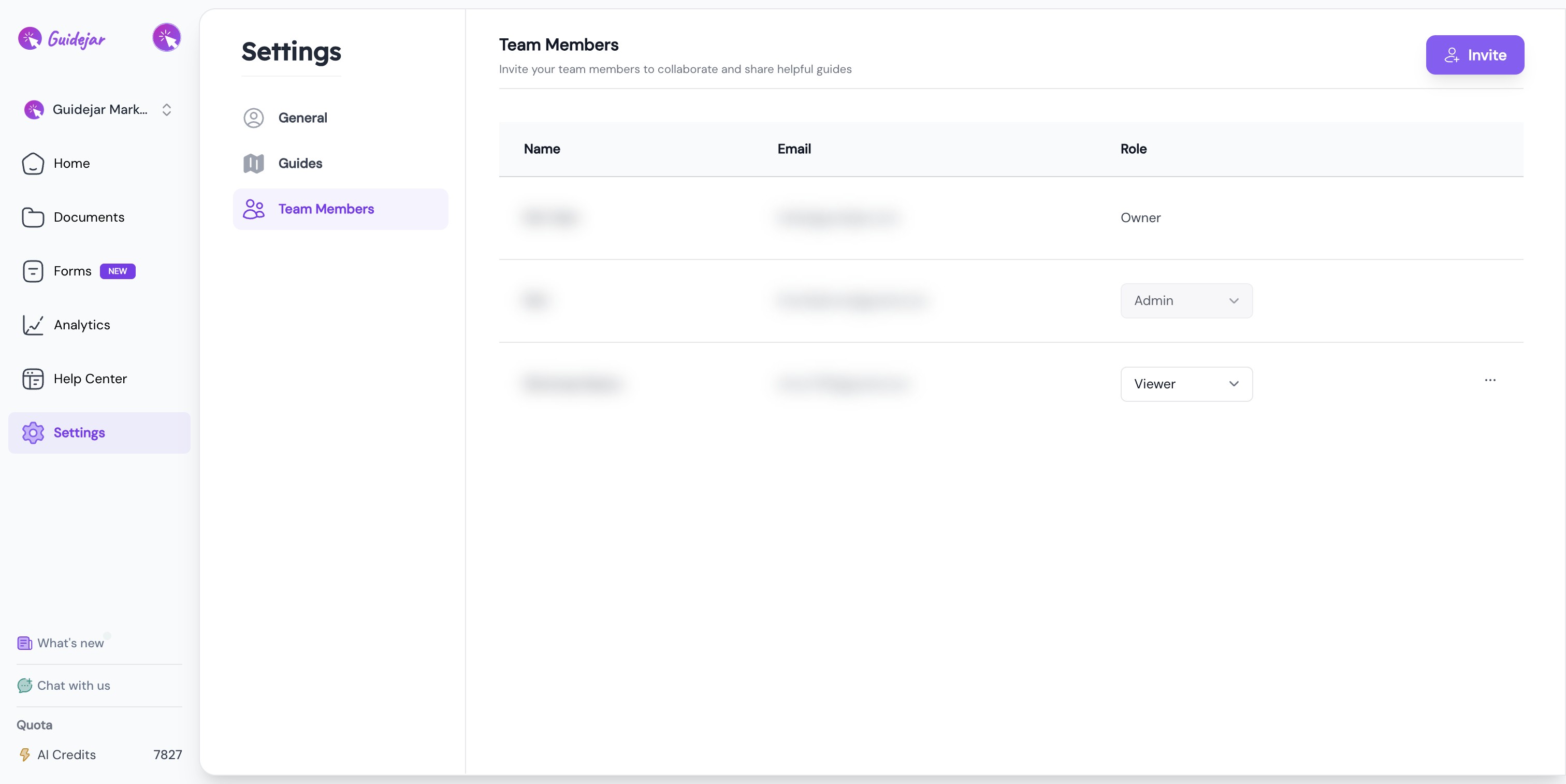 This guide outlines how to add new team members to your Guidejar workspace, enabling collaboration and shared access to your guides.